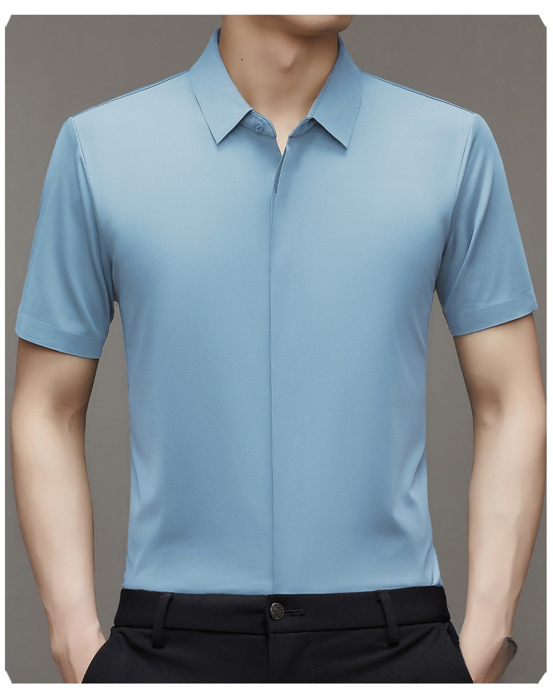 ビジネスメンズファッションシャツ 中年男性用ノンマーキング高弾性アイスシルク半袖シャツ サマーファッション・ビジネスシャツ