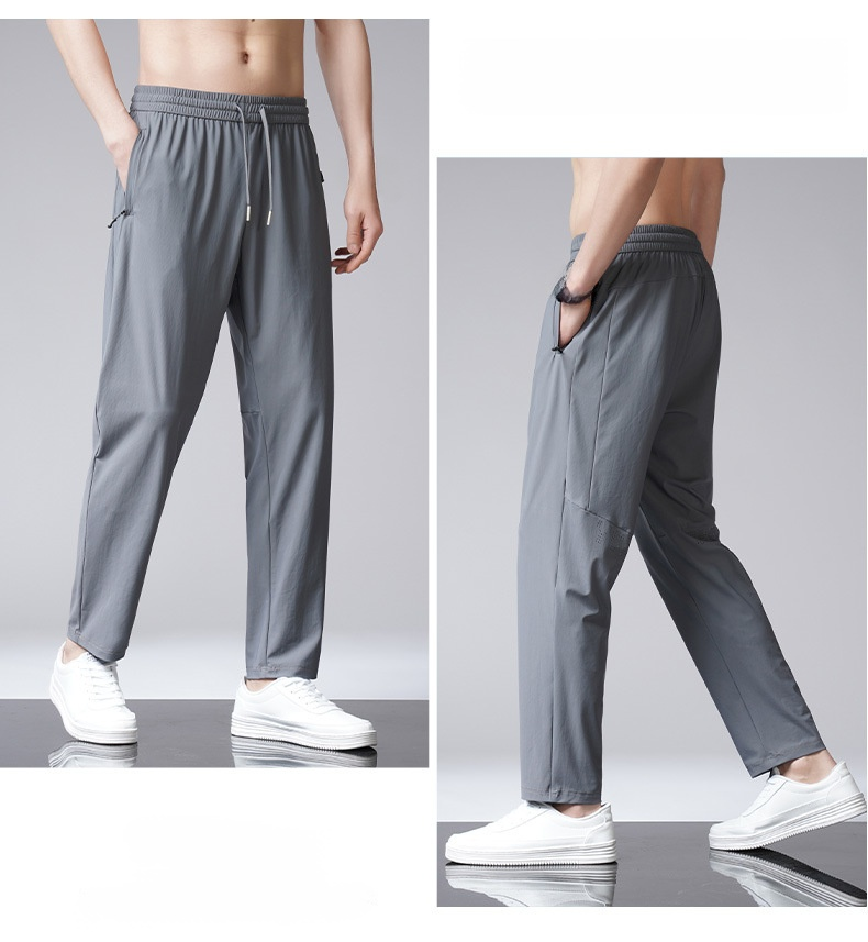 アイスシルク夏の通気性メッシュカジュアルパンツ 男性用薄手ハイストレッチ速乾スウェットパンツ プラスサイズ・デザイン・メッシュ・カジュアル・パンツ